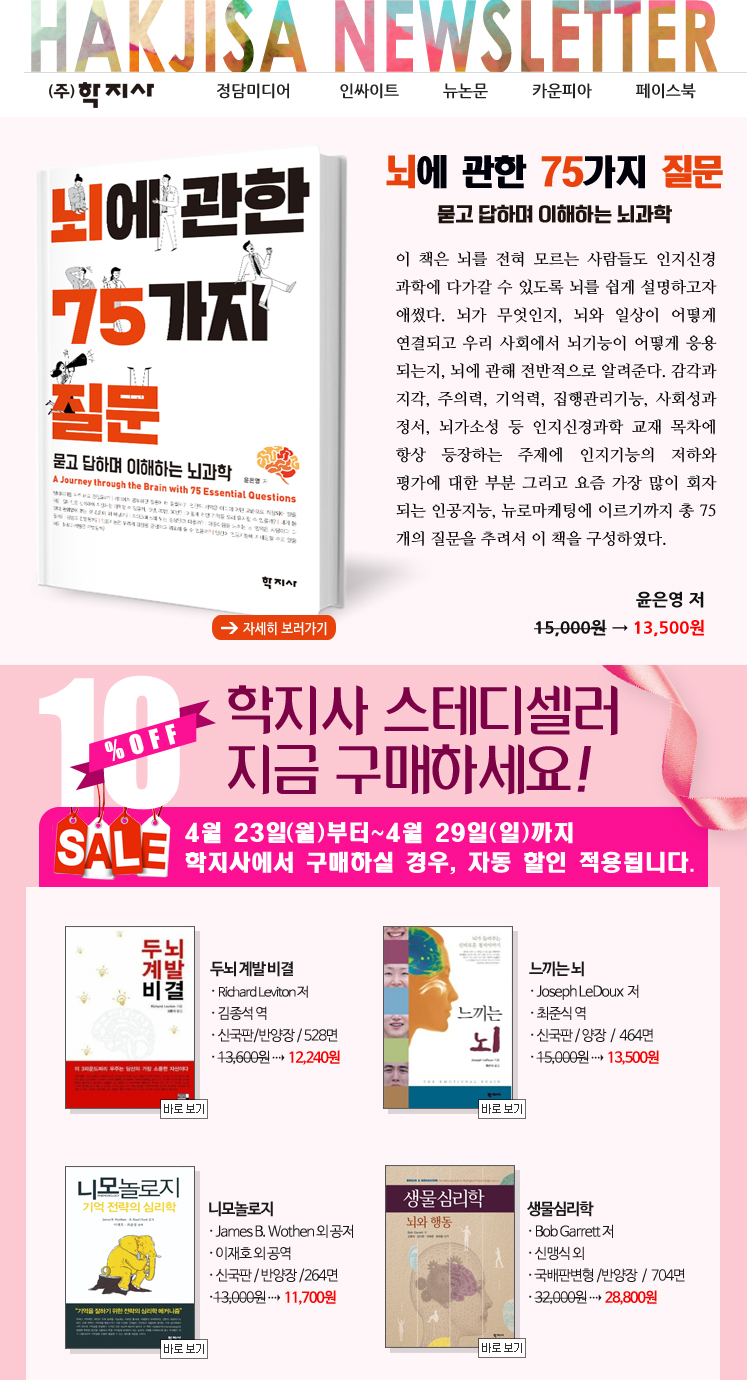 인지신경과학 입문서 [뇌에 관한 75가지 질문] 출간!