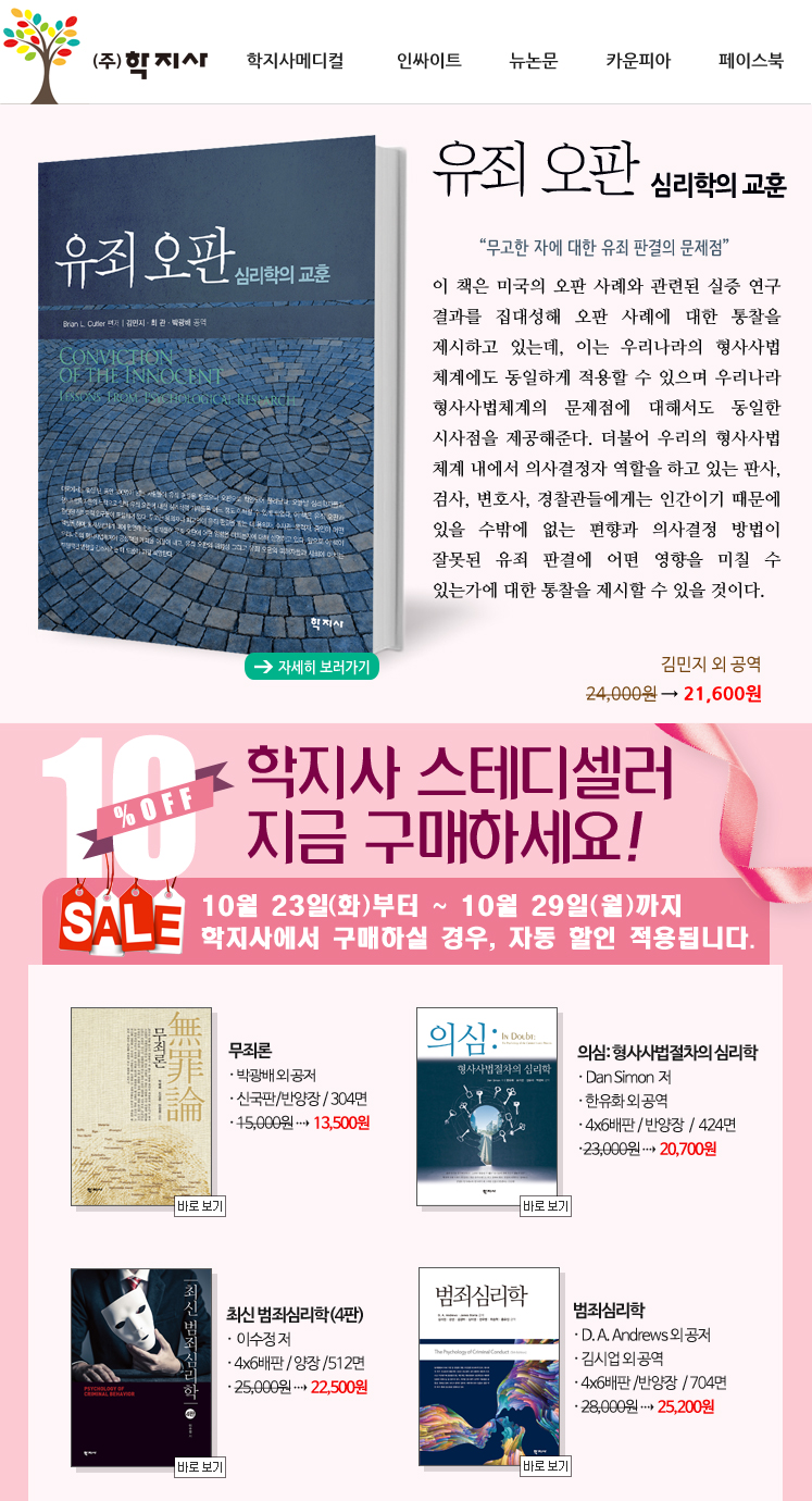 무고한 자에 대한 유죄 판결의 문제점을 통찰한 [유죄 오판] 출간안내!