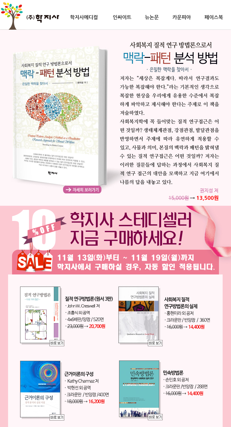 사회복지학에 꼭 들어맞는 질적 연구접근 [사회복지 질적 연구방법론으로서 맥락-패턴 분석방법]출간