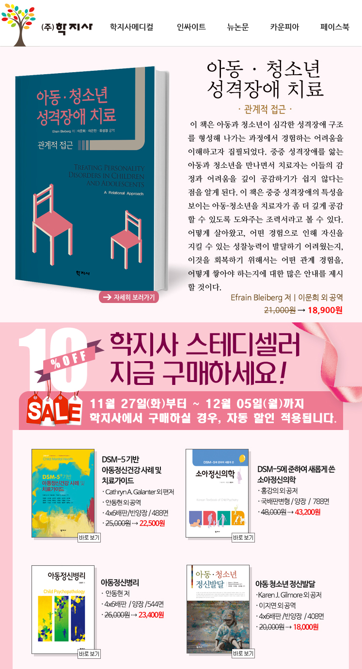 2018 학지사 연말 감사 이벤트 '전체 도서 10% 할인, 1권만 사도 무료배송!'