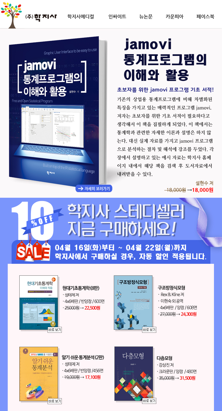 초보자를 위한 기초 서적 [jamovi 통계프로그램의 이해와 활용] 출간!