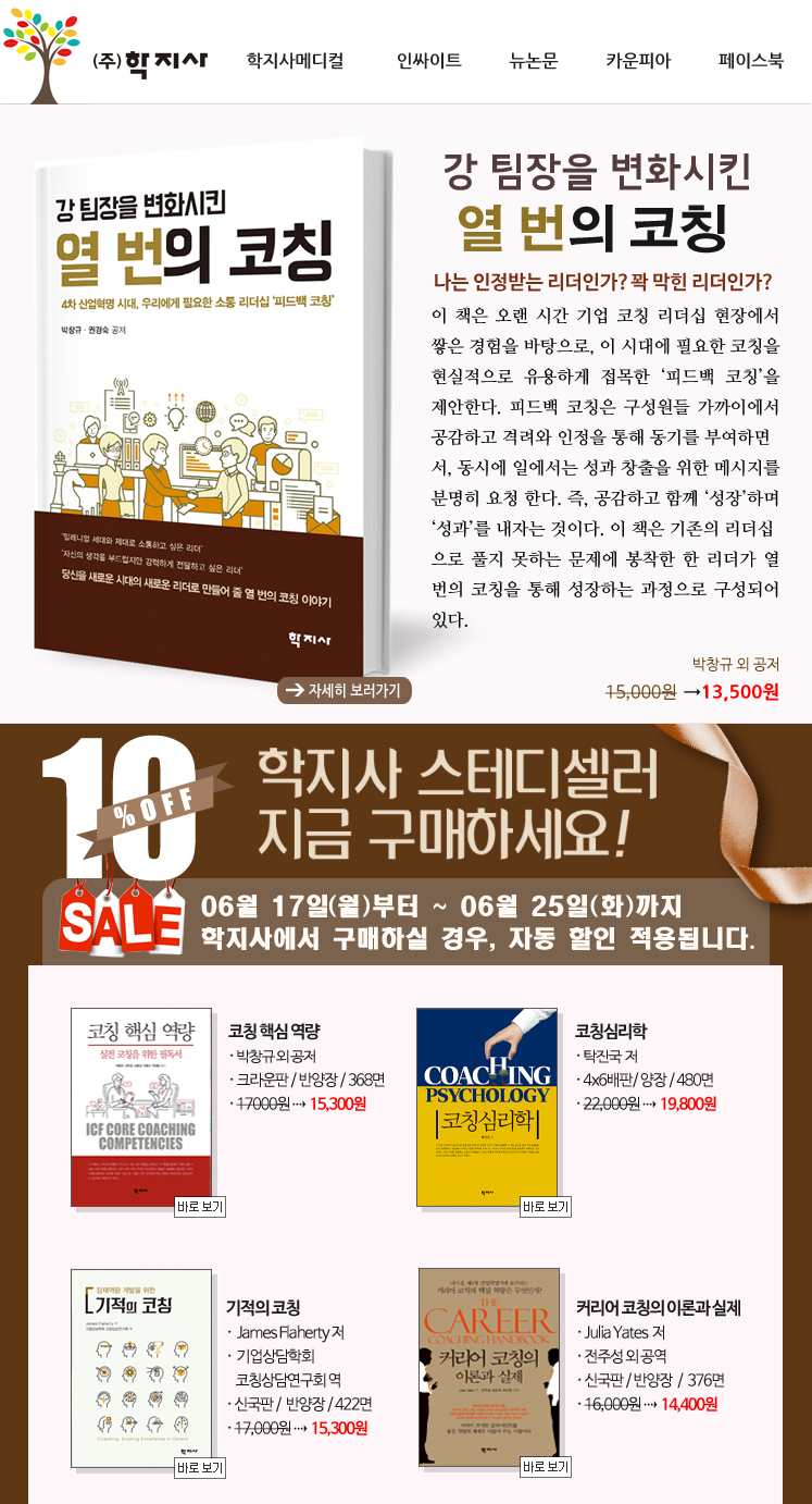 새 시대에 맞는 리더십을 제시하는 [강 팀장을 변화시킨 열 번의 코칭] 출간!