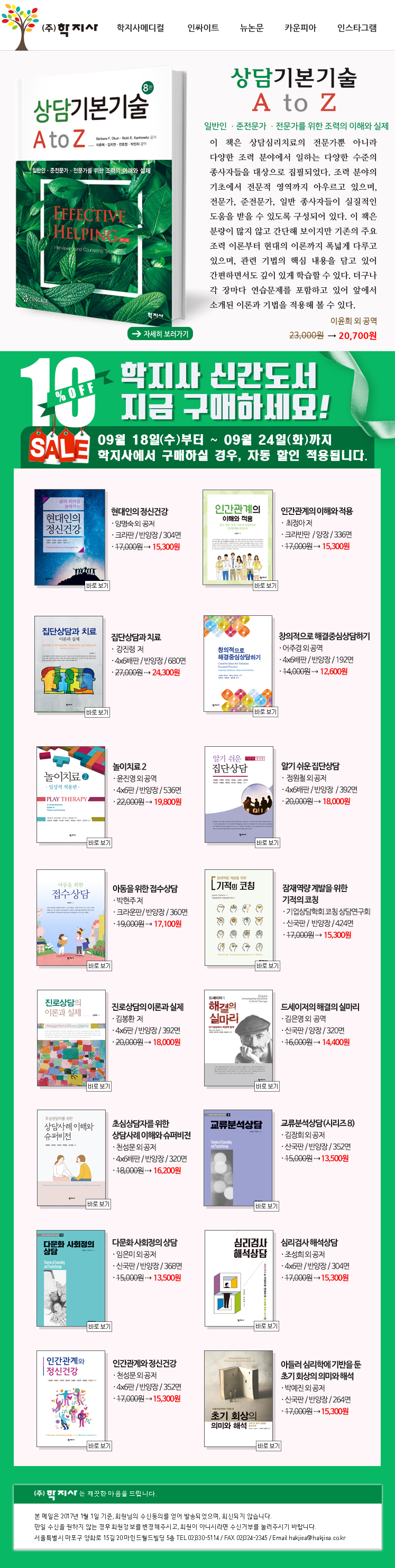 조력 분야의 기초부터 전문적인 영역까지 아우르는 [상담기본기술 A to Z] 출간!