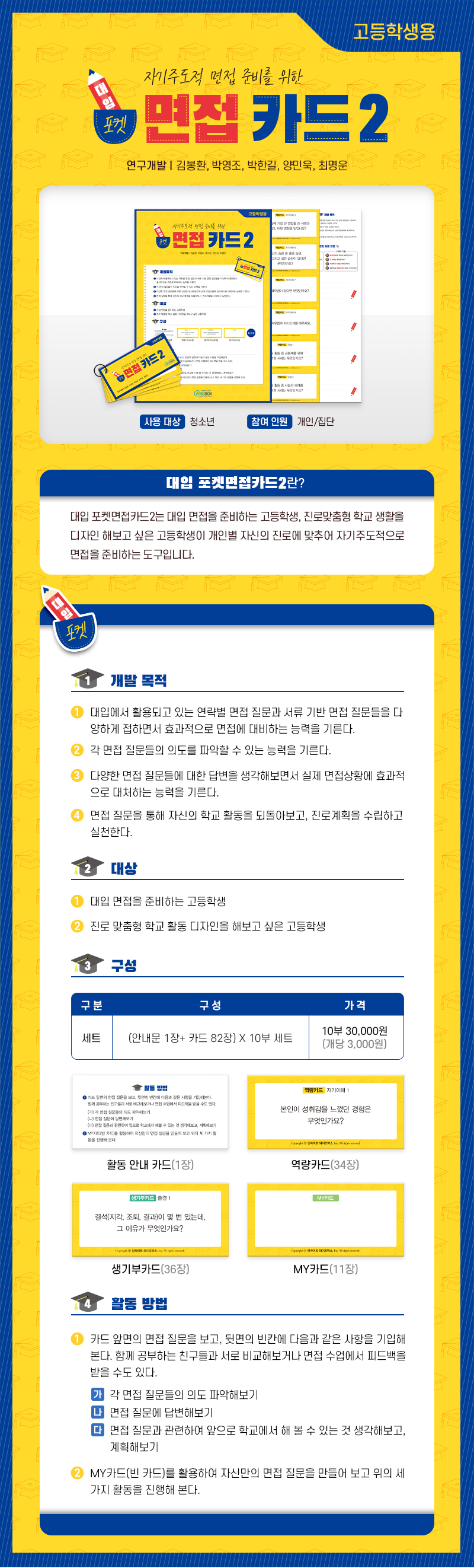 대입 면접을 준비하는 고등학생, 진로맞춤형 학교 생활을 디자인 해보고 싶은 고등학생이 개인별 자신의 진로에 맞추어 자기주도적으로 면접을 준비하도록 도와주는 도구입니다.